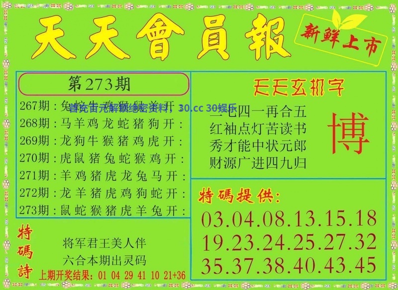 273期大小中特【小小小】开:虎04准 |