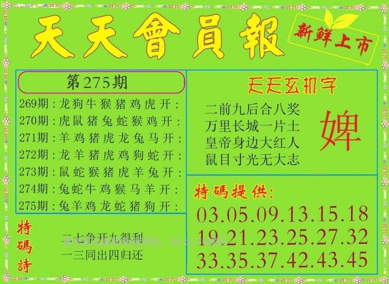 275期大小中特【大大大】开:鸡45准 |